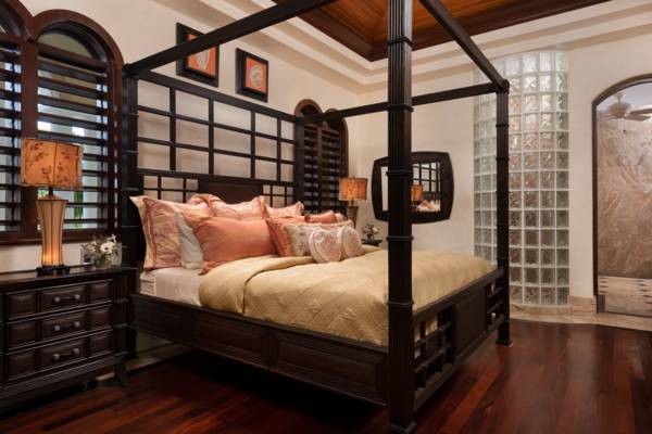 - Master Bedroom House (see photo): King Bed; Air Conditioning, Ceiling Fan, Private Terrace, Walk-in Closet, Exterior Access Only. Ensuite Full Bath with Shower, Outdoor Shower, Tub