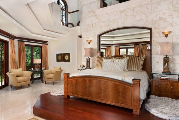 The estate was designed with majestic architecture, exquisite finishes and phenomenal attention to detail. This luxurious mansion includes a detached two-level master bedroom, three guest suites, a two-bedroom boat house and two-bedroom guest house. A Crestron system automates virtually everything in the residence, including the lighting, air-conditioning and audio.