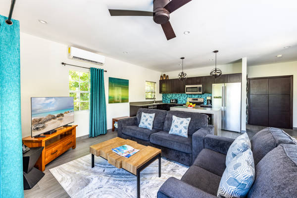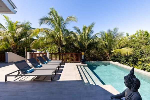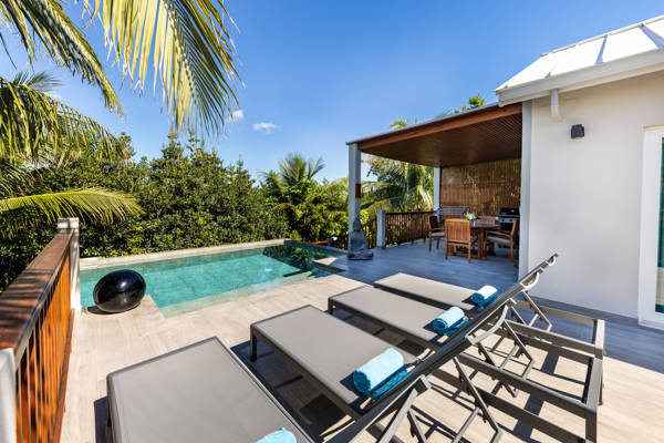 Whether sipping cocktails or morning coffee, the outdoor spaces were designed to maximize guests' abilities to enjoy our tropical & temperate climate day or night. Relax and recline on the comfortable loungers & get sun-drenched by day and stargaze at the dazzling constellations at night. The impressive wood paneled terrace provides not only shade, but it's an elegant and comfortable milieu to enjoy al fresco dining. Don't feel like cooking? Las Brisas Restaurant & Bar is only a short walk away, and overlooks Chalk Sound National Park and its hypnotic and surreal shades of 'chalky' turquoise water. Go from pool to beach in 2 minutes! We provide a wagon, large cooler and folding beach chairs. The waters are calm & shallow for about 50 feet from shore. Perfect for floating and playing ... or just floating. Here on this west-facing beach, the sunsets are spectacular. Taylor Bay is equally calm and shallow and just a short drive away. A little longer than Sapodilla Bay, this beach is perfect to enjoy a morning walk, or another sunset perspective.